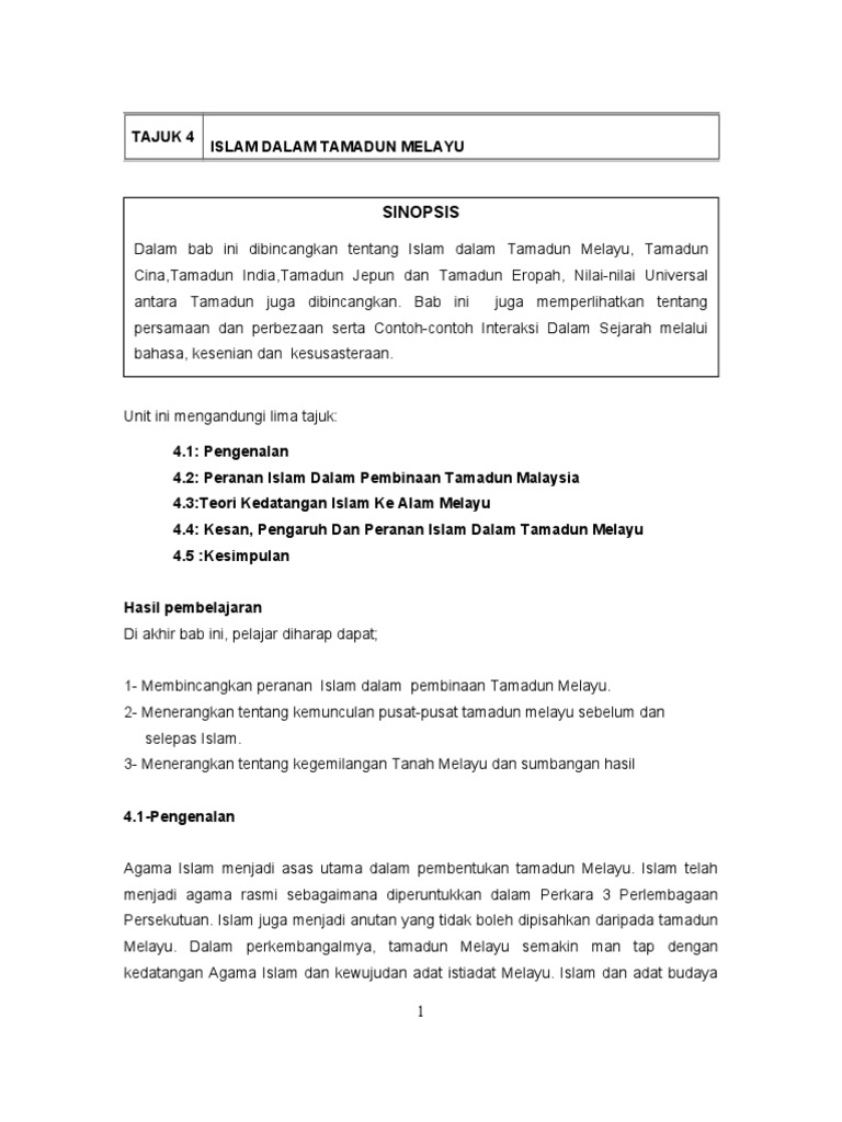 Sikap ini melahirkan kemudharatan, tertutup mata hati dan pikiran √ islamic base pass quality & checked by advisor, read our quality control guidelance for more info. Sumbangan & pencapaian tamadun india (indus). Kelahiran, perkembangan & kemerosotan tamadun islam tamadun islam lahir di kawasan padang pasir peranan manusia penting dalam pembinaan tamadun rasulullah ambil masa selama 13 tahun utk membentuk personaliti muslim yang unggul akhirnya. Buku ini merupakan himpunan hasil penulisan bersama para pensyarah fakulti tamadun islam, universiti bab 4: Dalam bidang botani, umat islam telah memberi sumbangan yang besar. Anda bakal mengenali sejarah pembentukan peradaban dan budaya melayu serta sumbangannya terhadap pembinaan masyarakat malaysia. Antara perkembangan yang amat menonjol dalam tamadun islam ialah pencapaian yang diperoleh dalam bidang sains dan teknologi. 1 bab 4 tamadun india bab 4: Tamadun islam & tamadun asia sinopsis: 3.7 sumbangan ilmu pendidikan kecemerlangan dalam ilmu pengetahuan antara elemen penting dalam setiap tamadun. Dalam unit 3, anda akan didedahkan kepada keaslian tamadun melayu. Pertembungan tersebut berlaku melalui beberapa saluran seperti perniagaan, peperangan. Dalam islam, teks keagamaan bisa ditemukan pada kitab alquran, hadis, fikih, tasawuf, dan akhlak.